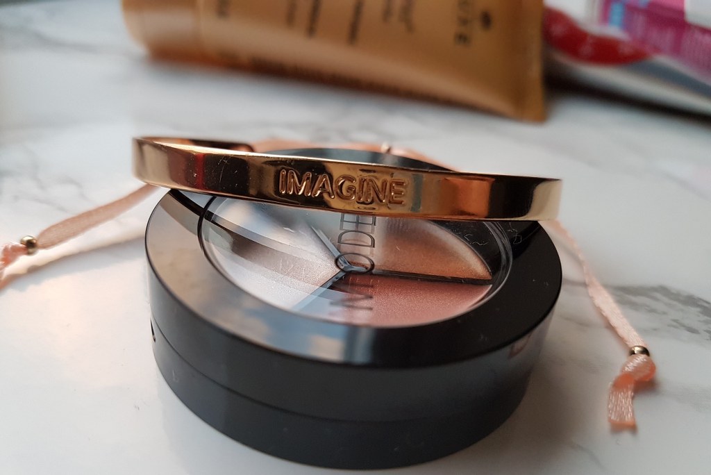 This was a special bonus item for anyone who has referred a friend to Birchbox. It is a really pretty gold coloured engraved bracelet. Mine is engraved with the word ‘Imagine’ and has peach coloured ribbon attached. I think this bracelet if elegant and very wearable, I am made up with this bracelet and it is something I will definitely wear.